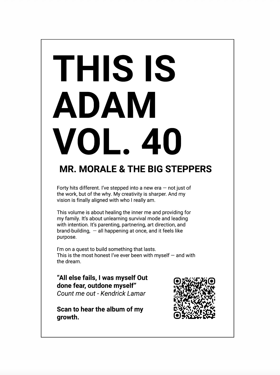 Adam Vol. 40 was more than a birthday celebration — it was an immersive exhibition designed to tell the story of my creative journey through culture, music, and personal evolution.